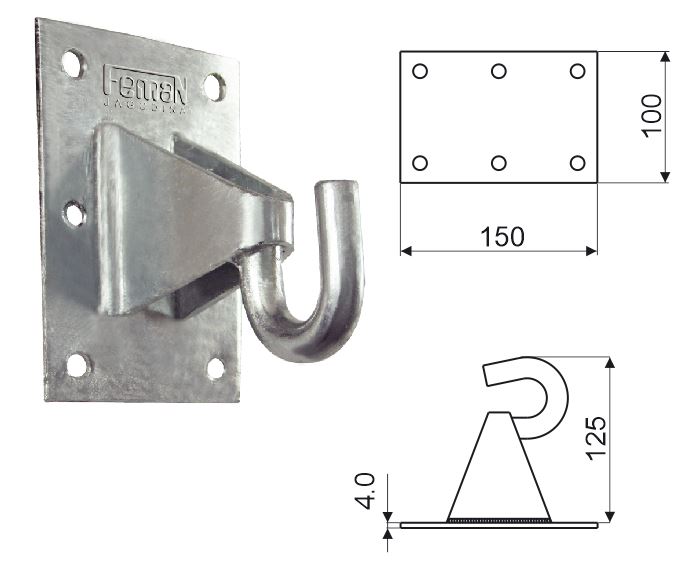 ČELIČNA ZIDNA KONZOLA 100×150 SA KUKOM ø16 FZK-16 (1800 daN)