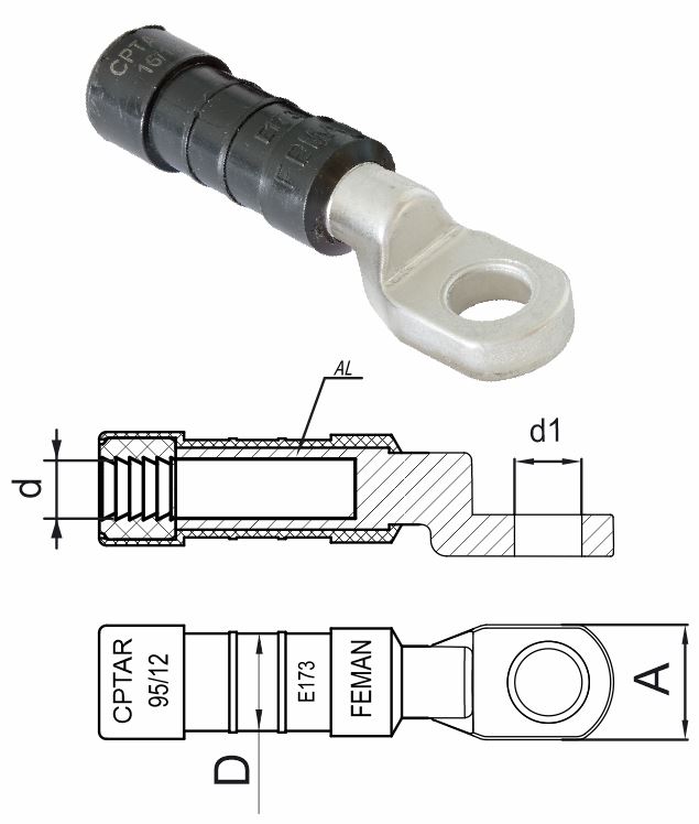 Koriste se za završavanje izolovanih Al provodnika i prelazak na Al šinu. Provodnik sa koga je skinuta izolacija uvlači se u papučicu kroz gumeni zaptivak koji sprečava prodor vlage i pojavu elektrolitičke korozije. Šestougaono presovanje se vrši direktno preko izolacije na mestima označenim na papučici.
