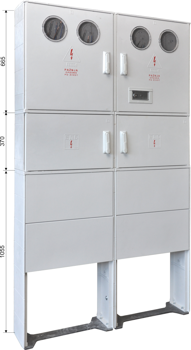U gornjem delu poliesterskog uzemnog postolja na zehtev kupca izrađujemo posebni prednji deo sa vratima i bravom za ugradnju osigurača i prekidača do 400A.