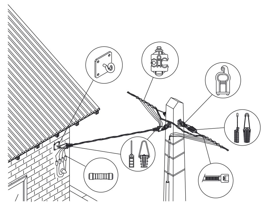 PRIBOR ZA ZIDNI KUĆNI PRIKLJUČAK SAMONOSEĆEG KABLOVSKOG SNOPA