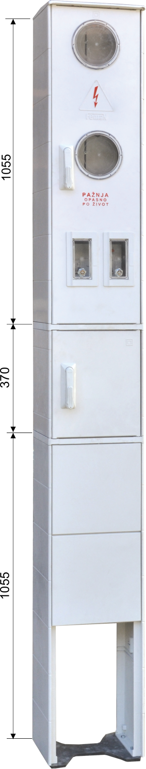 U gornjem delu poliesterskog uzemnog postolja na zahtev kupca izrađujemo posebni prednji deo sa vratima i bravo m za ugradnju osigurača i prekidača do 400A.