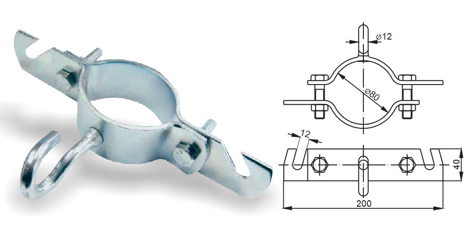 Namenjen je za postavljanje na cev prečnika 75-80 mm radi prihvatanja prolaznih zamki sa samonosećim kablom.Čelični delovi su standardno zaštićeni galvanskim cinkovanjem,a po želji kupca radimo i toplo cinkovanje.