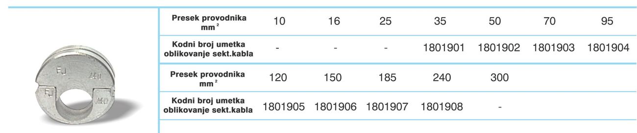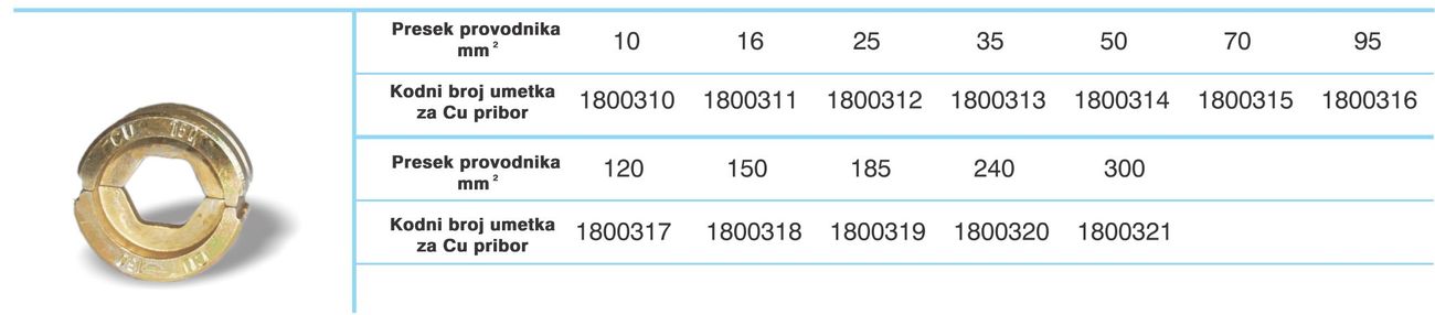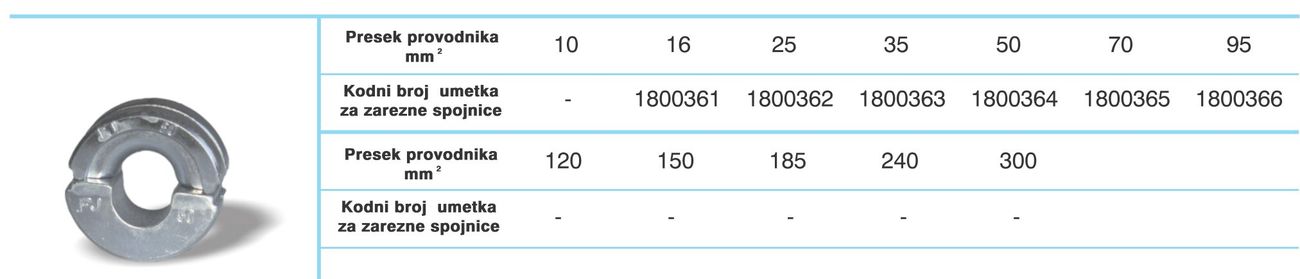 Umeci za presu FRP-300; FHP-300; FRHP-300; FAP-62