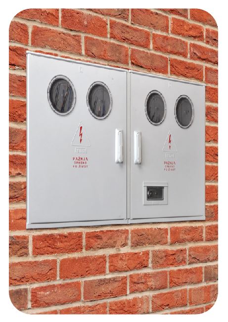 SB – Šemiran sa tablom za brojilo, priključnom izolacionom kutijom, strujnim rednim stezaljkama, limitatorima i brojilom