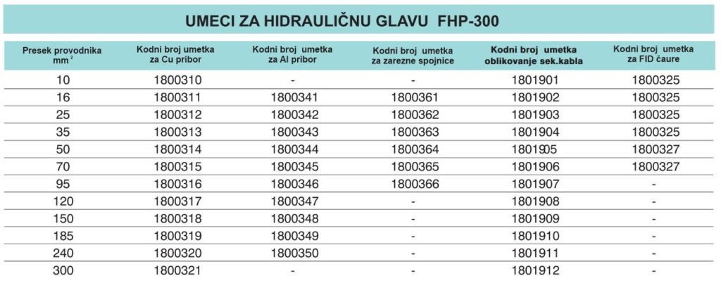 Koristi se za presovanje Cu provodnika preseka 10-300 mm² i Al provodnika 16-240 mm². Glava je okretnaza 360º što omogućuje rad u svim položajima.